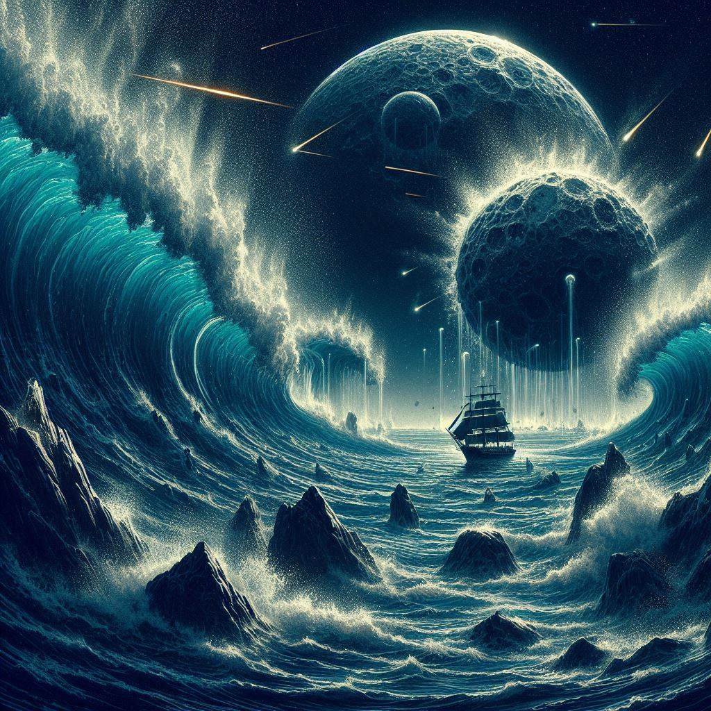 Depuis deux ans, la circulation maritime est fortement contrariée par l’apparition de phénomènes naturels d’envergure. Les grands courants sous-marins se sont en effet accentués, provoquant des vagues hautes de plusieurs dizaines de mètres traversant les océans en permanence. Ainsi, nos navires ne sont pas adaptés à des conditions de circulation dantesques et sont condamnées à rester au port. Le commerce maritime, qui représentait jusqu’à 80% du commerce mondial en volume dans les années 2020, a donc été perturbé par ce phénomène naturel d’une ampleur telle que les mers et océans sont désormais impraticables, si ce n’est pas quelques têtes brûlées adeptes de sports extrêmes. La perturbation des océans pourrait bien être durable, car elle est due à l’arrivée en orbite terrestre d’astéroïdes en cours d’exploitation par l’industrie extractive. Ces astres supermassifs ont été récupérés dans la ceinture d’astéroïdes il y a quelques mois et ont été stabilisés à proximité de la Terre afin d’envisager leur traitement par des équipes de mineurs. Le projet semblait parfait a priori, et devait rapporter des milliards d’euros. Toutefois, c’était sans compter sur les interférences gravitationnelles causées par l’incursion de ces astres à proximité de notre planète. De même, leur présence exerce une attraction gravitationnelle supplémentaire, modifiant les courant océaniques, les marées, et provoquant une agitation sans égal, avec des vagues scélérates pouvant atteindre cent mètres de haut très fréquemment. La situation ne pourra pas durer, dans la mesure où les échanges internationaux sont fortement perturbés. Les échanges, notamment de pétrole, de charbon, de biens manufacturés, etc., doivent passer par le secteur aérien, ce qui entraine une expansion phénoménale de l’industrie aéronautique. Des dizaines de milliers d’avions sont produits chaque mois et un grand nombre de pilotes doivent être formés dans l’urgence pour garantir l’approvisionnement de nos sociétés. En effet, la perturbation du trafic maritime a provoqué une crise économique majeure. Les économies internationales étaient en effet interdépendantes, la plupart des usines fondant leur activité sur l’alimentation en produits venant parfois de l’autre bout de la planète. Le commerce mondial repose sur l’interconnexion des acteurs économiques, et sur la possibilité d’échanger des biens et services entre différentes parties de la planète. Nous avions déjà eu le cas de perturbations du commerce maritime en raison de conflits géopolitiques, notamment lors des conflits au Moyen Orient qui empêchèrent la circulation des navires en mer Rouge, obligeant les bateaux à contourner l’Afrique et augmentant les coûts de transport et des denrées, et donc le prix final des biens produits par les usines européennes. Toutefois, ces crises n’avaient rien de commun avec le niveau de celle connue actuellement. Les complications sont telles que la plupart des villes côtières ont été englouties par des tsunamis gigantesques. Les ports ont été partiellement ou totalement détruits et un grand nombre de navires ont été coulés par des raz-de-marée.